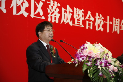 院长卢冠忠在庆典大会上致辞,他代表上海应用技术学院全体师生员工,向出席庆典的领导和嘉宾表示热烈的欢迎!向关心、支持学校发展和奉贤校区建设的各级领导、建设单位、社会各界人士表示衷心的感谢和崇高的敬意!他说,新校区落成之际,正逢我校合校十周年。十年来,我们坚持以“应用技术”为本,强化内涵建设,形成了依托行业、服务企业,培养一线工程师为主的高层次应用技术人才的办学特色,学校的各项事业实现了快速发展。2008年,学校获硕士学位授予权,2010年获批工程硕士培养单位。毕业生就业率平均达97.5%;全校高级职称教师近400人,具有硕士以上学位教师达74.3%;科学研究水平不断提高,2009年科研经费达9130万元,其中企业委托课题占70%以上;从应用技术研究中提炼出的应用基础研究也有较大发展,2010年获国家自然科学基金12项;每年新增与企业合作项目100余项。
