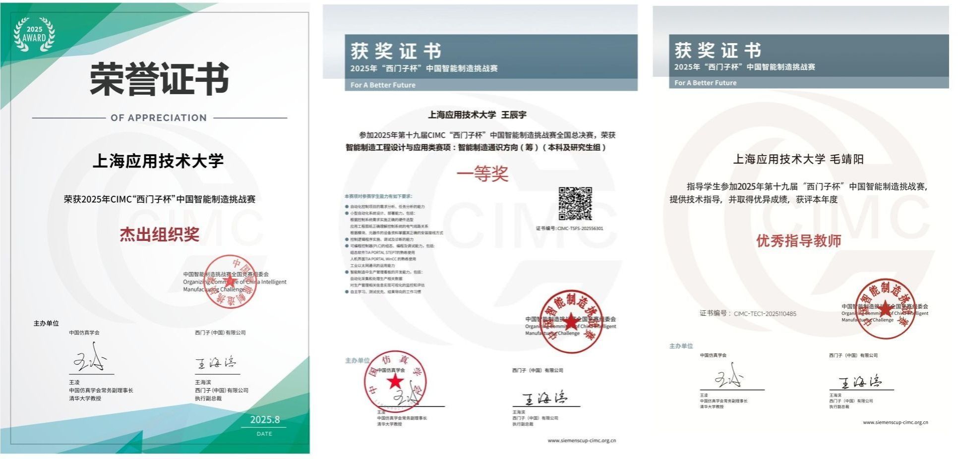 8月15日,教育部第十九届CIMC“西门子杯”中国智能制造挑战赛全国总决赛在山西省太原理工大学圆满落幕。在这场代表中国智能制造领域最高规格与最大规模的A类学科盛事中,我校四支精锐队伍成功晋级全国总决赛,在激烈的角逐中一举斩获全国一等奖1项、全国二等奖3项,刷新我校近年最好成绩。学校凭借出色的组织工作荣膺赛事“杰出组织奖”,智能技术学部荆学东、蒋文萍、毛靖阳等教师荣获“杰出组织个人”称号,毛靖阳荣获“全国优秀指导教师”称号。