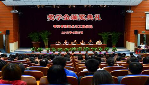 为在全院营造出勇于攀登、开拓创新的文化氛围和良好的学习、生活环境,激励全院学生积极上进,不断超越,4月27日,香料香精技术与工程学院2011-2012学年第一学期优秀综合奖学金暨学习进步奖、宿舍卫生优秀奖颁奖典礼在图书馆B106举行。院长肖作兵,分管教学、学生工作副院长,食品与科学工程系主任,辅导员以及全院获奖同学和各班学生代表共400余人参加了颁奖典礼。