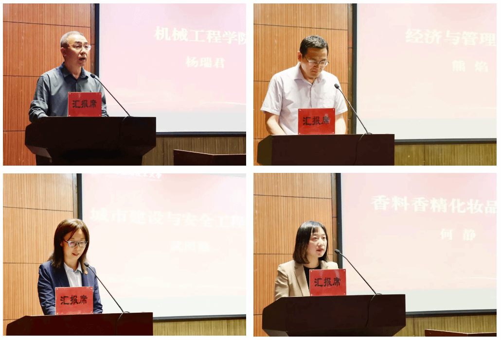 杨瑞君、熊焰、武田艳、何静四位来自学院的学员代表结合主题,分别围绕智能技术学部(筹)改革探索实践、商科教育高质量发展、教育教学审核评估工作、推进毕业生就业等方面作交流发言。