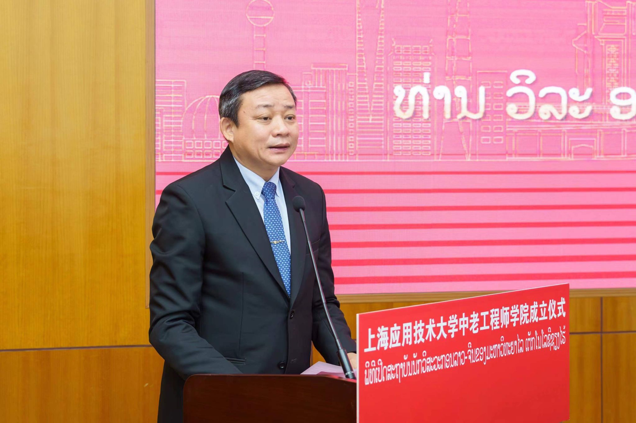 上海市人大常委会副主任、上海市人民对外友好协会会长陈靖,上海市政协常委、对外友好委员会主任张小松,老挝驻上海总领事馆副总领事阿南出席。国产乱码久久久久久红粉影视党委书记郭庆松、校长汪小帆,原党委书记祁学银,老挝苏发努冯大学校长维拉·阿诺拉出席。国产乱码久久久久久红粉影视党委副书记、副校长王瑛主持仪式。