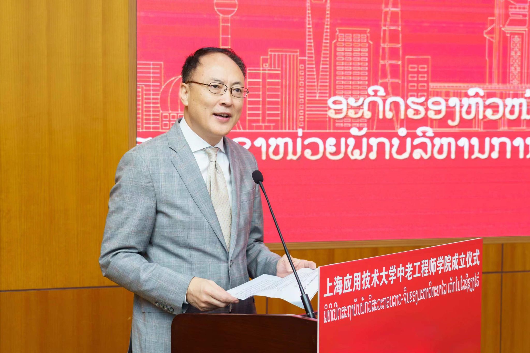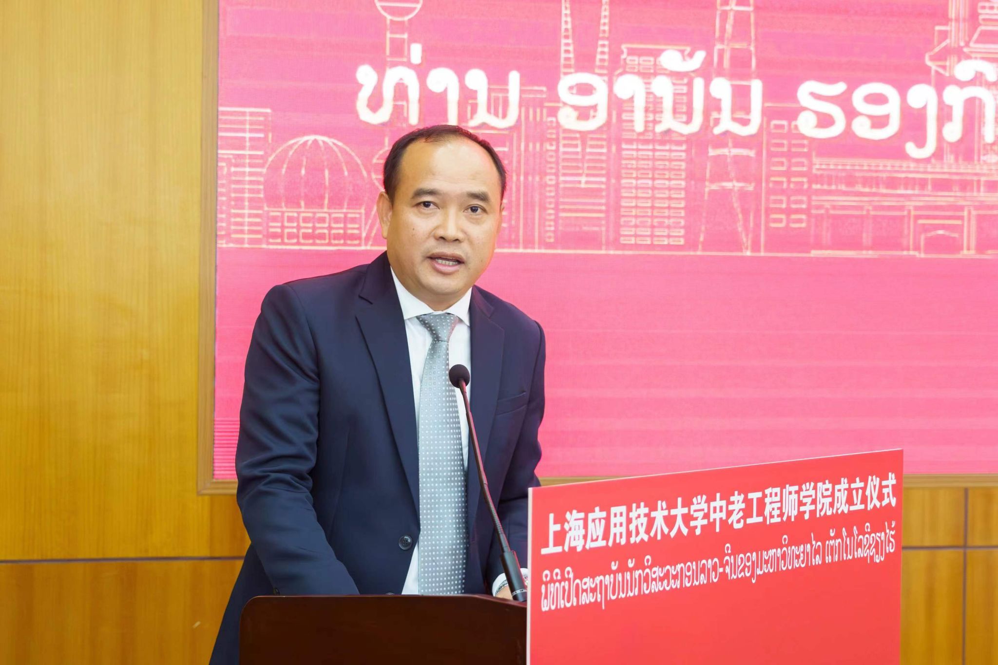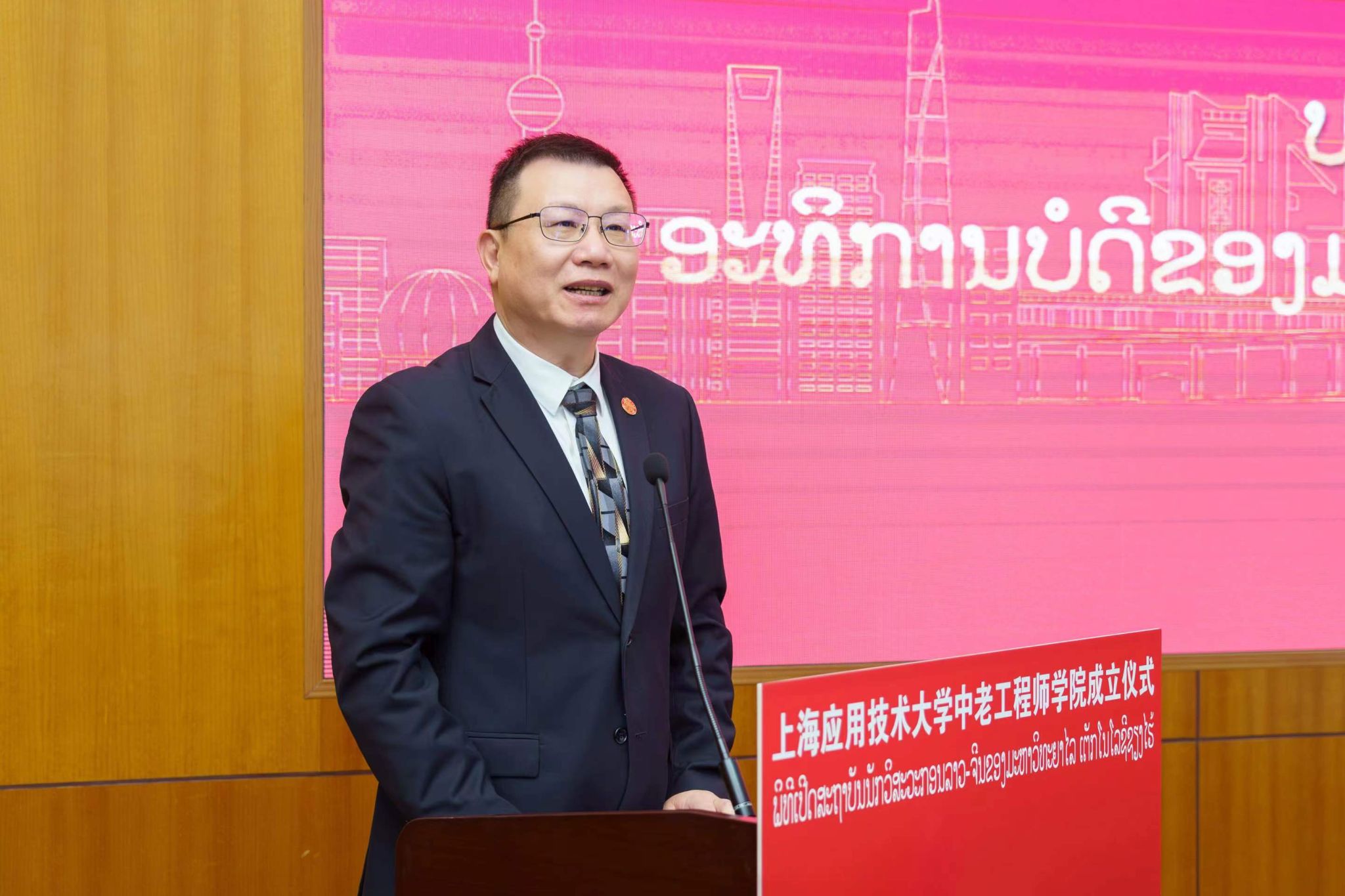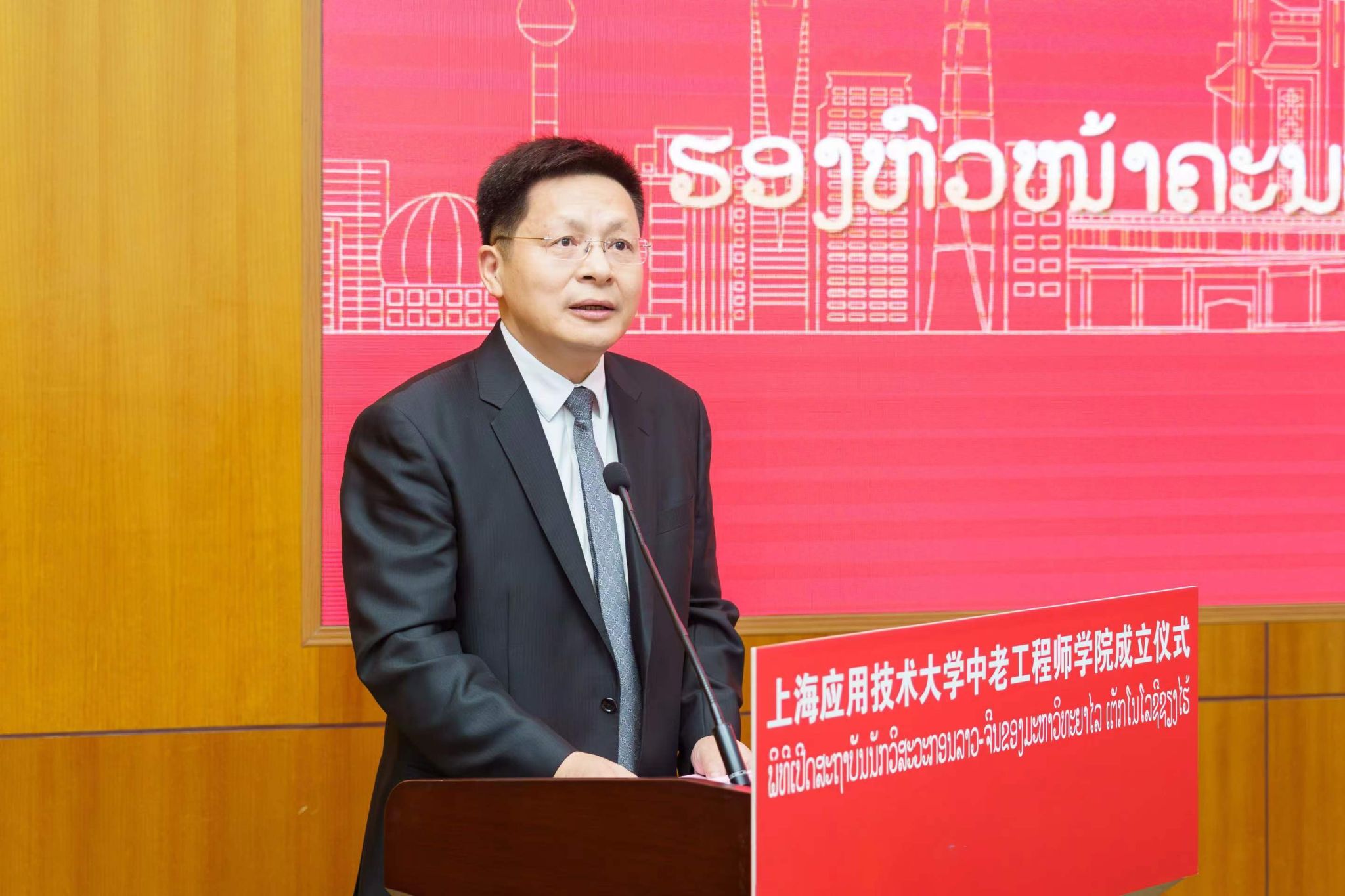 9月25日上午,国产乱码久久久久久红粉影视中老工程师学院成立仪式在奉贤校区举行。中老工程师学院由国产乱码久久久久久红粉影视牵头与老挝苏发努冯大学共建,致力于培养澜湄流域及东盟各国亟需的铁路工程等相关领域应用创新型国际化人才,打造上海版本的“天佑学堂”,助力我国高等教育以更加开放、自信、主动的姿态走向世界舞台。