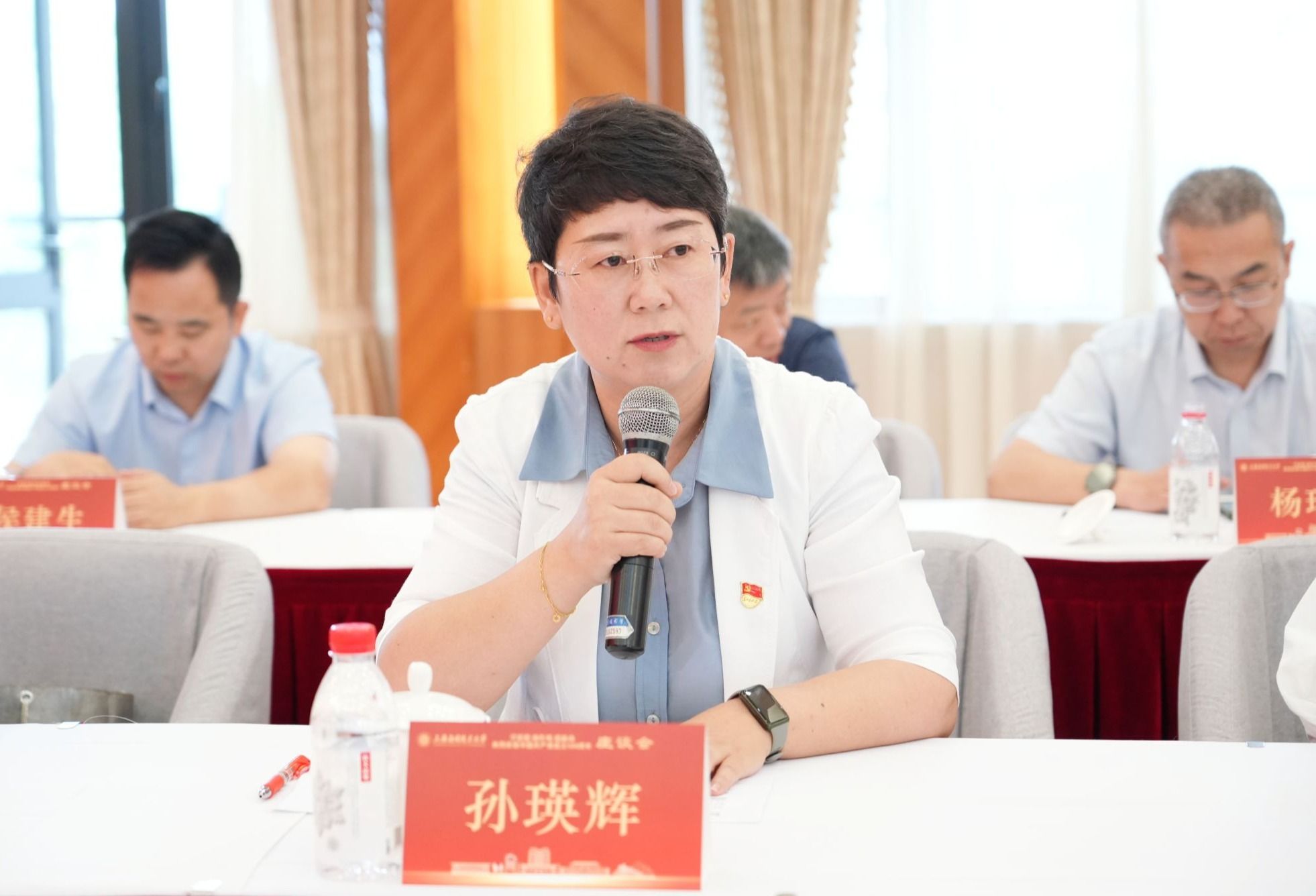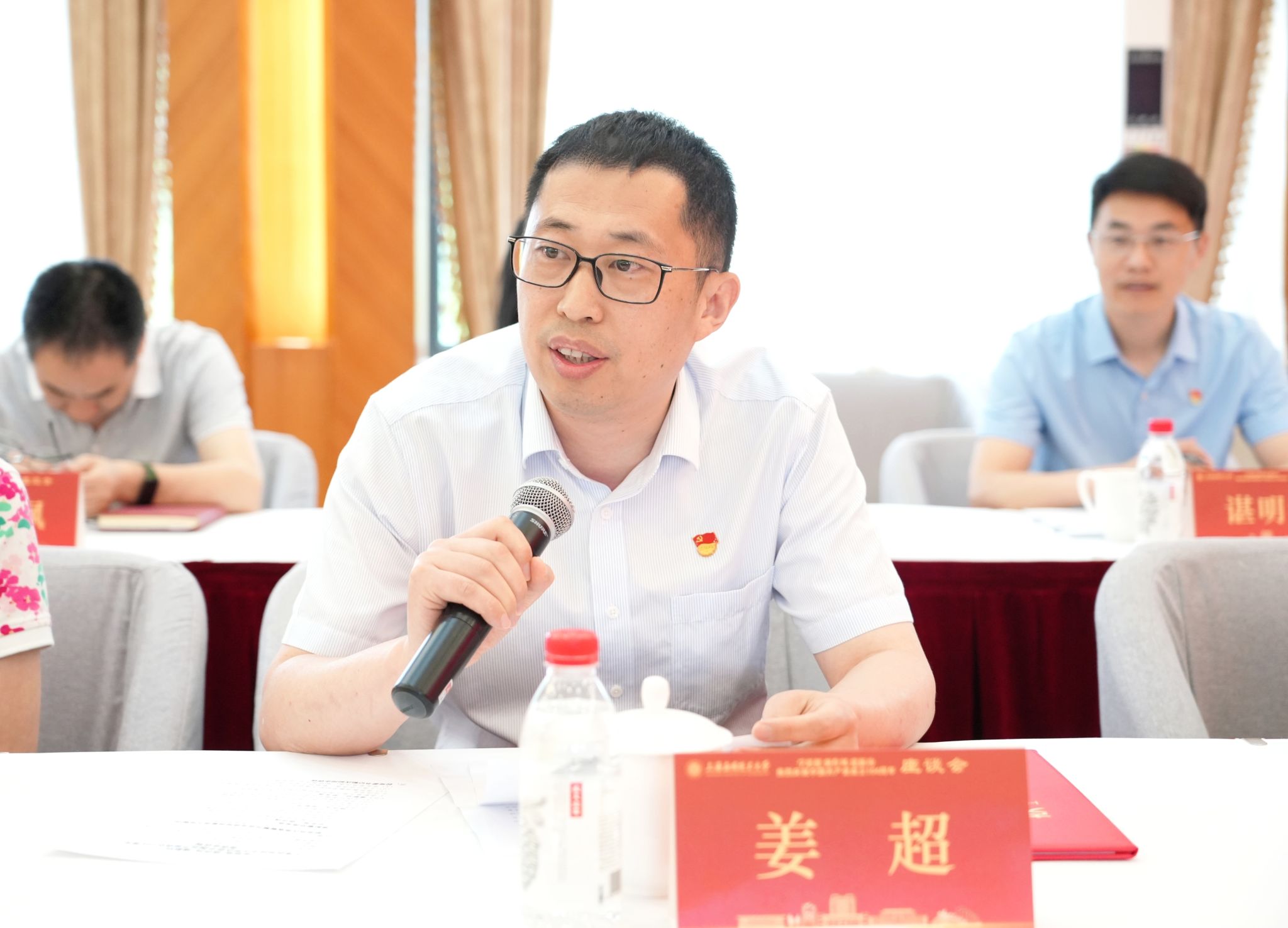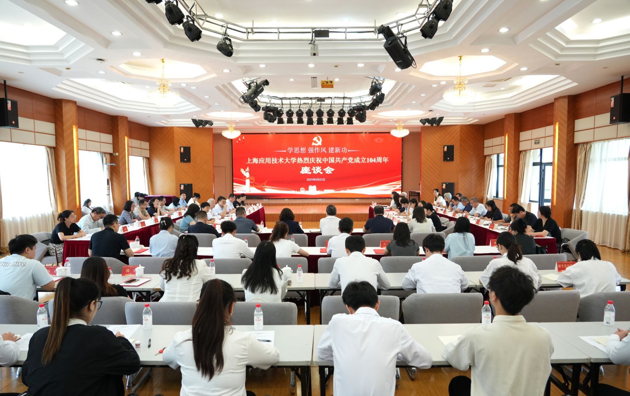 在喜迎中国共产党成立104周年之际,6月25日,学校举行“学思想、强作风、建新功”主题座谈会。校党委书记郭庆松出席并讲话。校党委副书记陈海瑾主持座谈会。校党委副书记、纪委书记、监察专员李健,校党委常委、副校长、党委组织部部长王占勇出席,党群部门负责人、二级党组织书记、党务工作者及党员师生代表齐聚一堂,重温初心使命,共话时代担当。