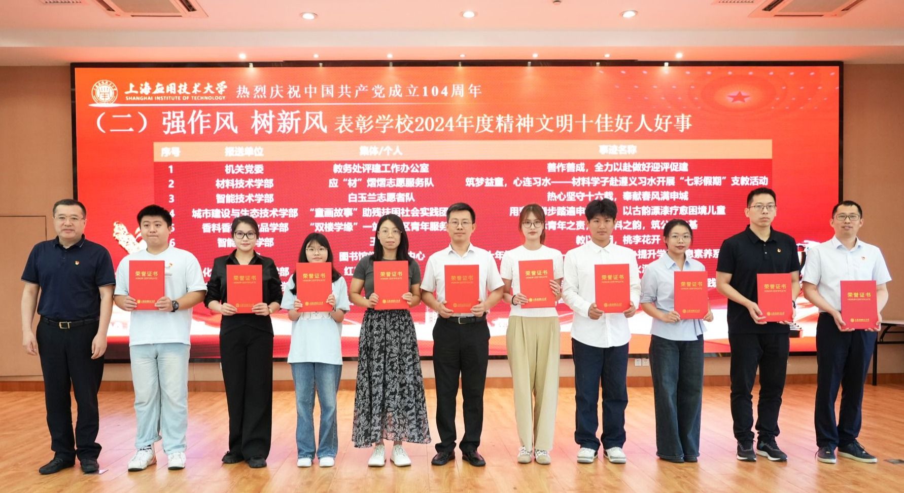 李健为学校2024年精神文明十佳好人好事颁奖