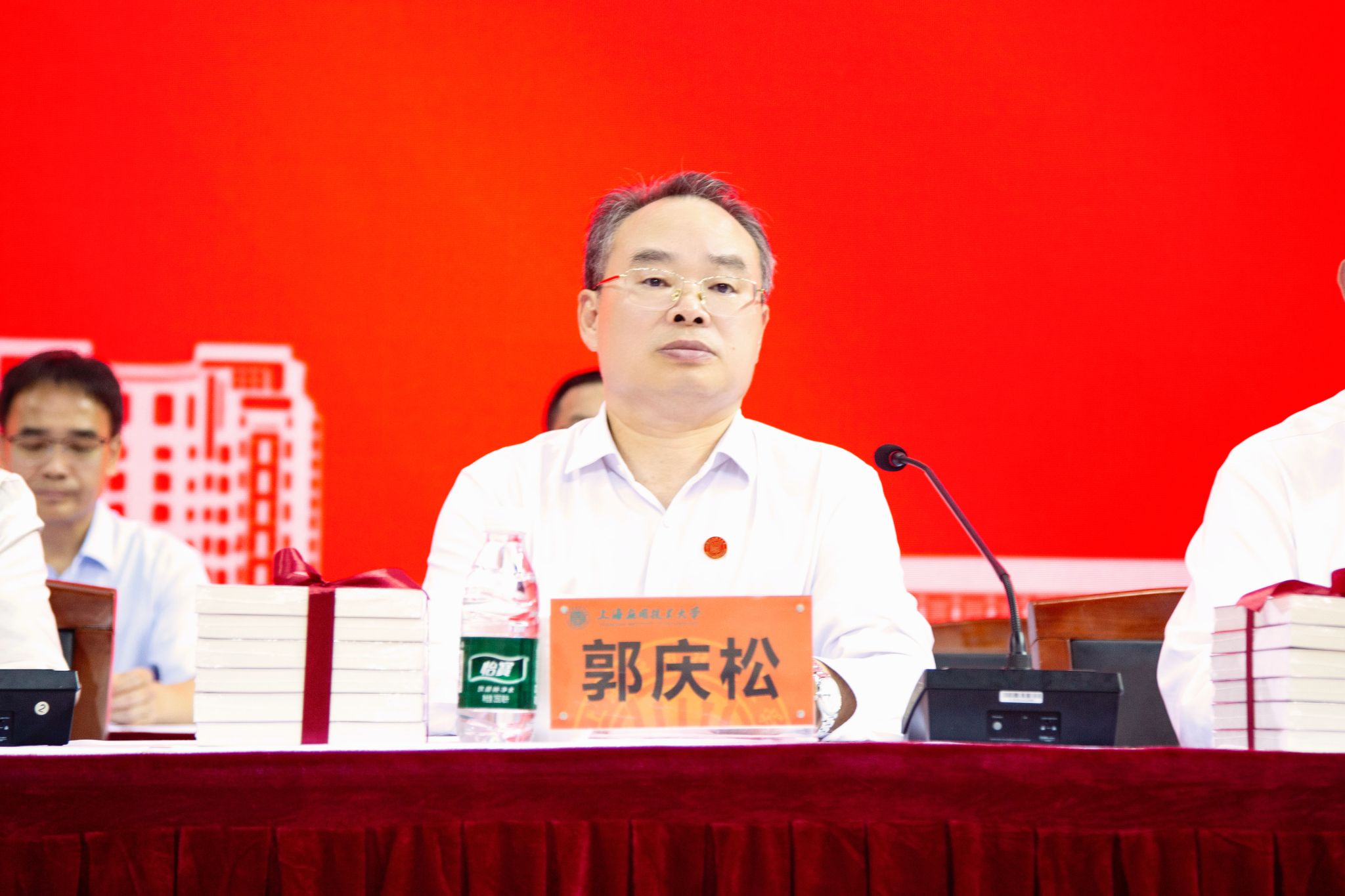 校党委书记郭庆松,校长汪小帆,党委副书记陈海瑾,党委副书记、纪委书记、监察专员李健,副校长毛祥东、王占勇,校党委常委、宣传部部长杨明等出席开学典礼。各学院(部)院长(主任)、党组织书记,党委学生工作部人民武装部、研究生院负责人,承训部队教官及2025级全体新生参加活动。