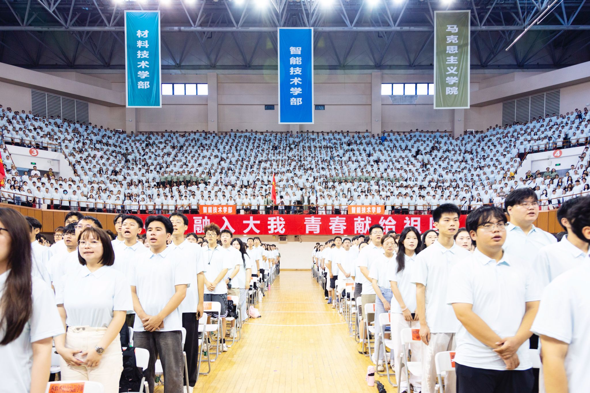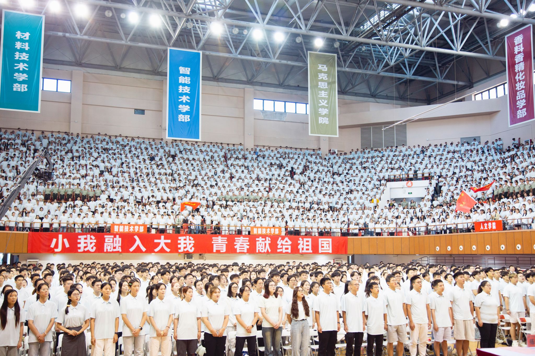 典礼最后,师生齐声高唱校歌《为着上应的荣光》,歌声响彻全场。全体新上应人意气风发,开启新程。